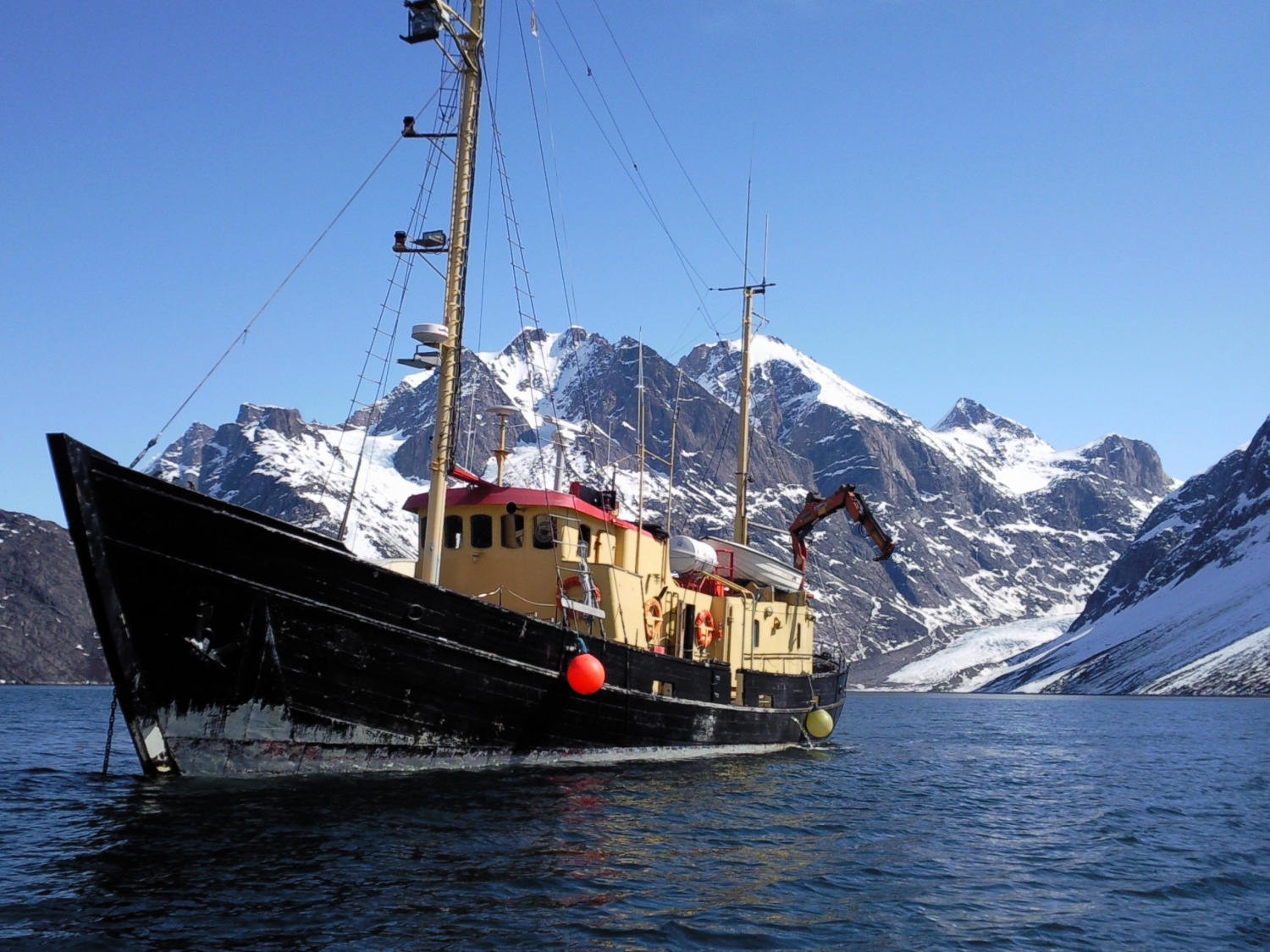 Notre bateau sera le Hans Hansson, un remorqueur de sauvetage construit en Norvège en 1960 et reconditionné en 2005. Son capitaine, Dion Poncet, né dans les années 1970 en Géorgie du Sud sur le voilier (en hivernage) de son père Jérôme Poncet (1). Dion connaît parfaitement les côtes et les baies de la Géorgie du Sud. Nous nous dirigeons vers la Géorgie du Sud afin d’explorer les glaciers et les montagnes en ski de randonnée. L’expédition est organisée par Jean-Marc Pic et Ollivier Carrère (guides de haute montagne). Cinq de leurs clients, rodés et fidèles, composent l’équipe de skieurs. Guide de haute montagne (en repérage et en vacances), je complète le groupe.